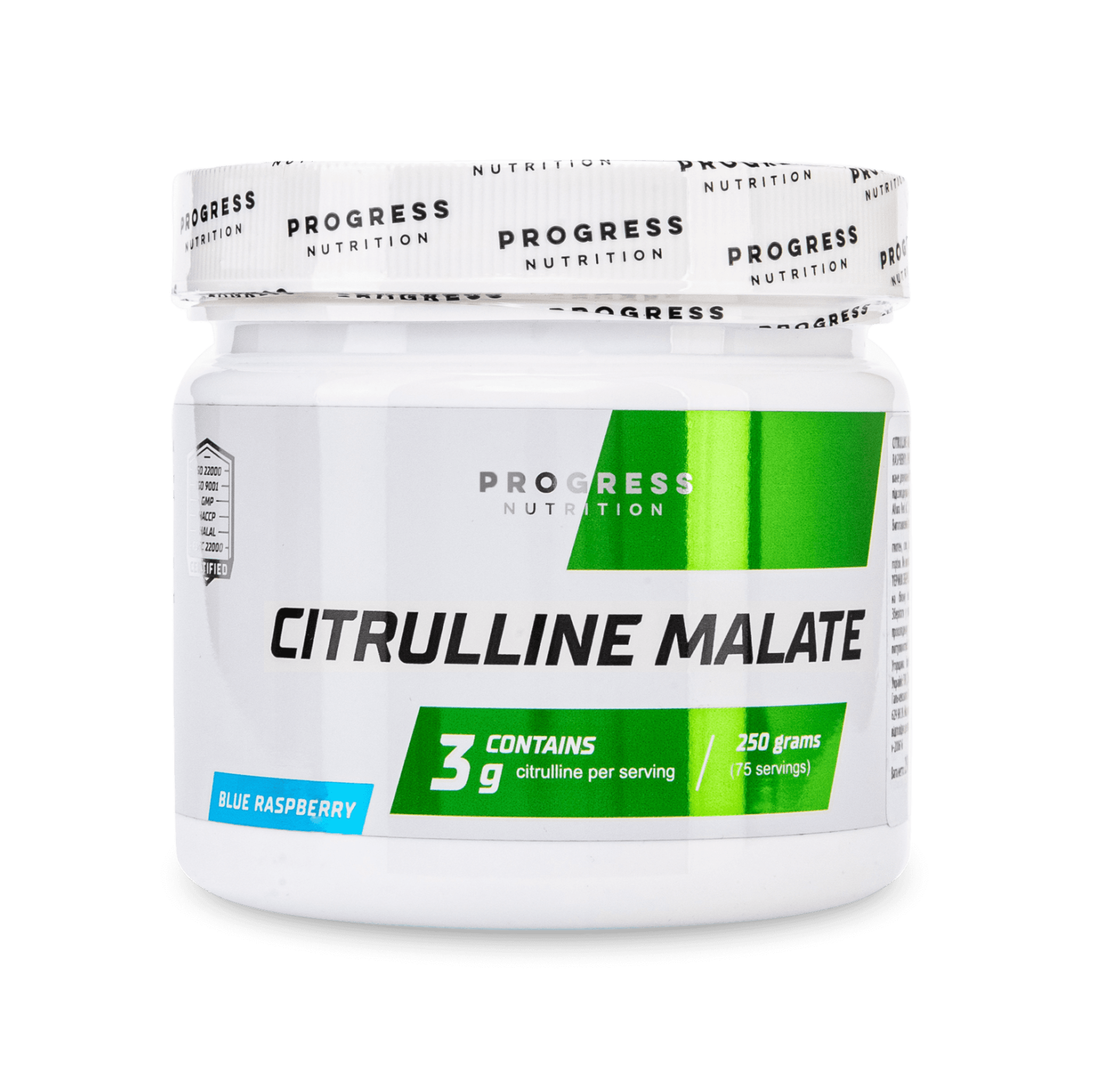 L-цитрулін (46%), яблучна кислота (46%), ароматизатори, підсолоджувач (сукралоза), засіб проти злипання (діоксид кремнію), барвники (Індиготин, Allura Red AC 1).